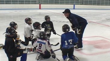 How can skaters get lower on power turns? Flex the ankles, bend the knees and sit the bottom down. In this Pro Edge group taught by class to younger skaters, the playersmore...