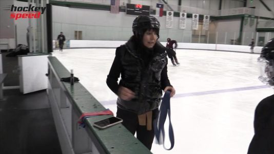 Amy introduces the “Hockey shuffle” – a series of c-cuts (also known as pumps to figure skaters). She looks for skaters to have wide feet and a low stance, keepingmore...